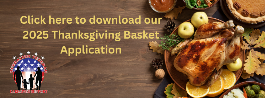 Operation Veteran & Caregiver Support is honored to help military and veteran families celebrate the season with our Thanksgiving Holiday Assistance Baskets. Each basket includes ingredients to prepare a traditional holiday meal at home — not a pre-made or “heat & eat” meal. Baskets are catered to the size of the family residing in the home, as well as available kitchen supplies and cooking skill level, to help ensure every family can enjoy a meal they can prepare with confidence.
