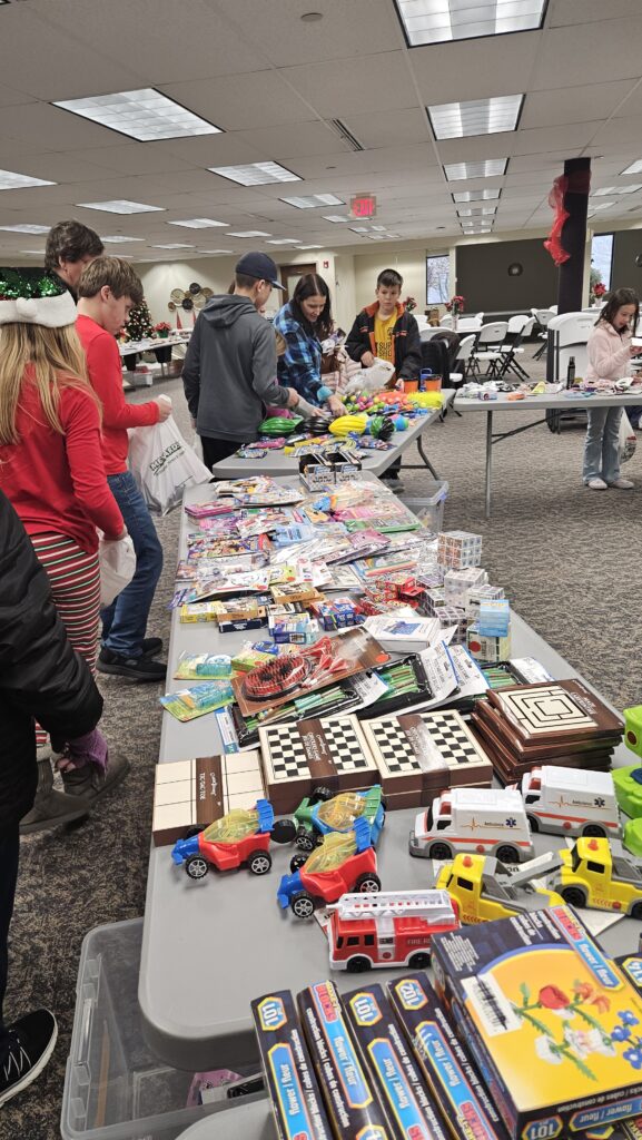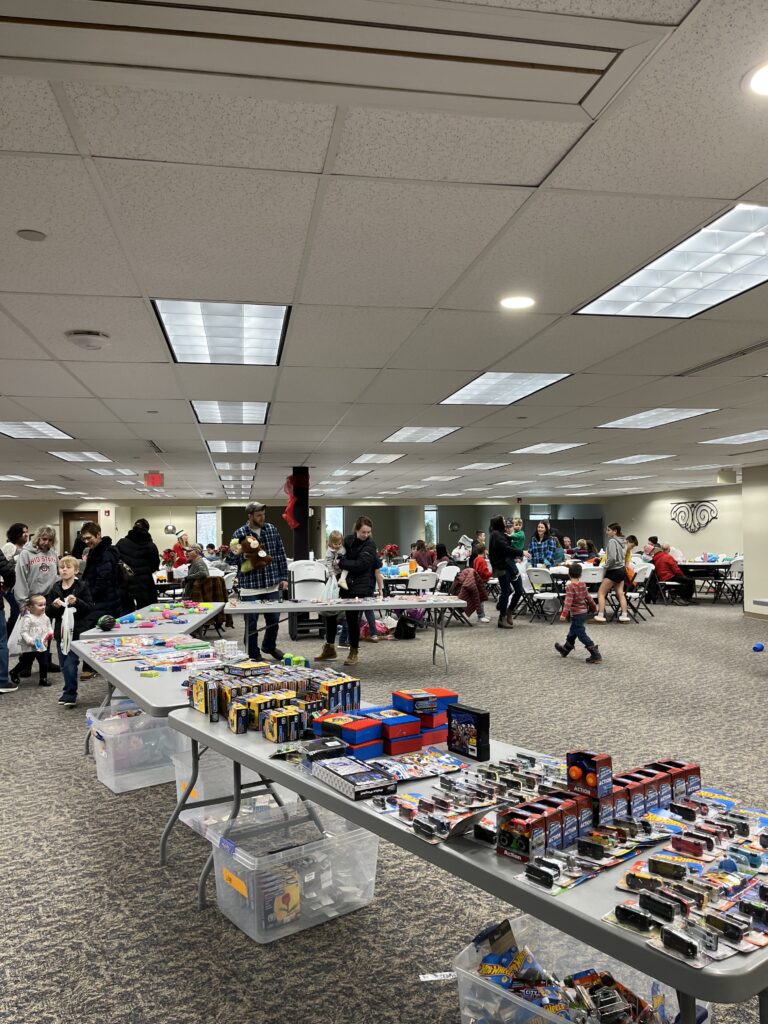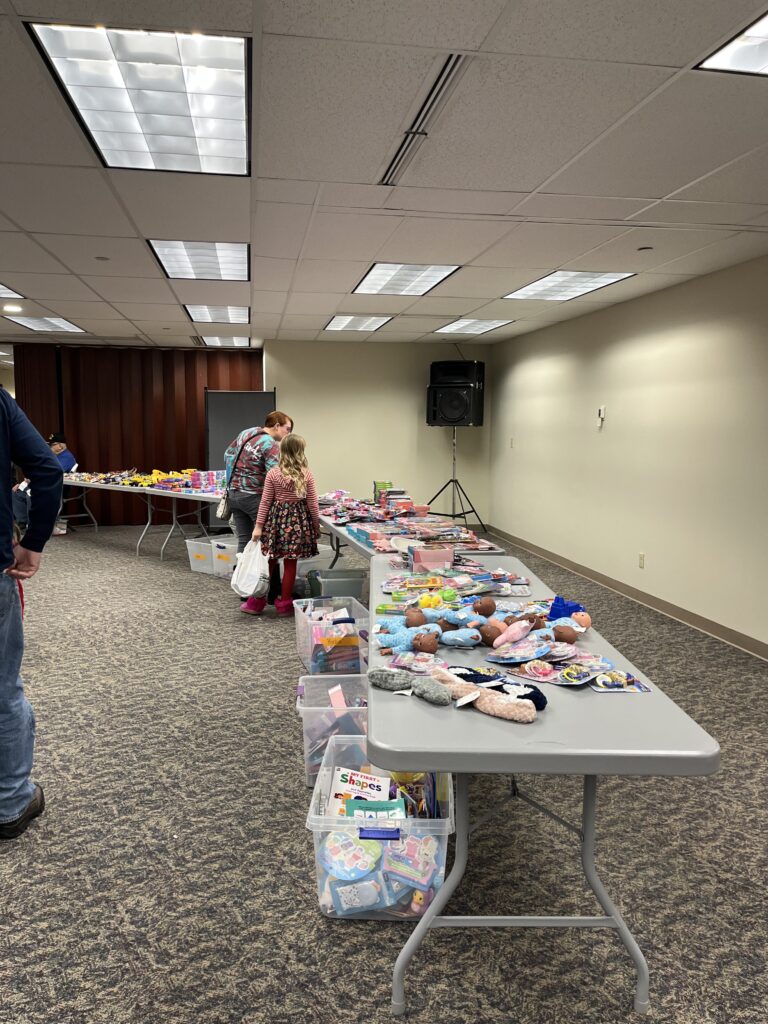 Every corner of the room buzzed with activity. Tables were piled high with toys, and each child received a bag to fill to the brim with special surprises of their choosing. Santa himself made a memorable appearance, greeting every child and handing out a stuffed animal to each one. In return, he was delighted with letters, handmade cards, and even a cookie or two — clearly well loved by his visitors.