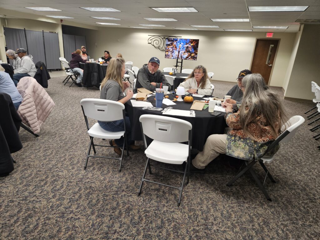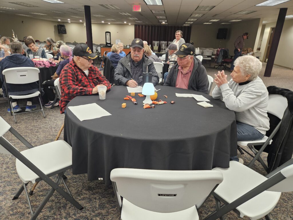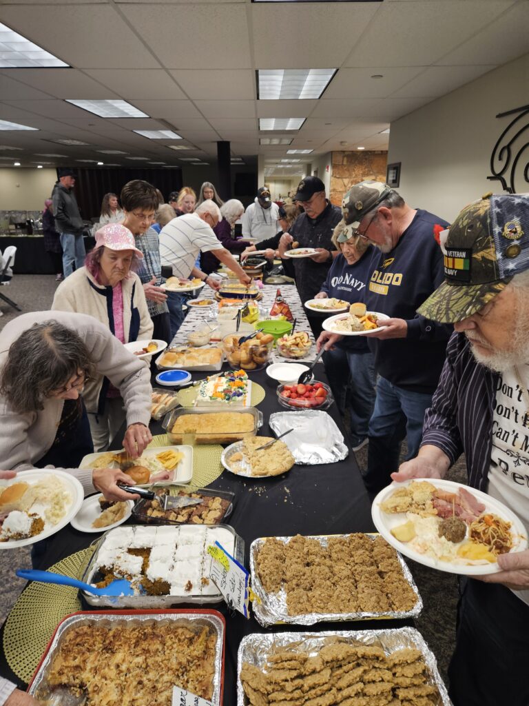 Our October Muster & Mingle was full of laughter, friendly competition, and plenty of great food! Veterans, families, and friends gathered for a carry-in dinner featuring everything from scalloped potatoes and vegetable lasagna to apple fritter cake and peanut butter no-bake cookies. Operation Veteran and Caregiver Support provided ham and rolls, rounding out a feast that made sure no one left hungry.